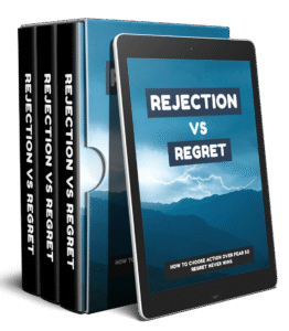 The core of the package is a premium-quality eBook titled Rejection Vs Regret, which dives into powerful techniques and mindset shifts to help clients overcome the pain of rejection and choose a life of action. The content is positioned around the idea that “The Pain Of Rejection Is Temporary, But The Ache Of Regret Lasts A Lifetime.”